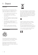 İçindekiler 1 Önemli 4 Güvenlik 4 Geri dönüşüm 4 Genel Bakış 3 Başlangıç Kurulum 4 SDV5120 ürününün ayarlanması 5 5 6 6 7 VHF/FM alımı için 7 UHF alımı için 7 Antenle dijital radyo kurulumu 8 5 Sıkça sorulan sorular 9 6 Garanti ve servis 9 7 Sözlük Türkçe 2 SDV5120 ürününüz 10 TR 3