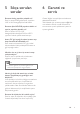 4 SDV5120 ürününün ayarlanması VHF/FM alımı için 1 Teleskopik dipolleri mümkün olduğunca uzatın. Not •• En iyi alım için kazanım kontrol düğmesini aşağı çevirmek mümkündür. UHF alımı için 1 TV veya FM radyoyu açarak istediğiniz kanala/istasyona getirin. Başarılı bir alım elde edene kadar dipolleri farklı yönlerde yukarı ve aşağı hareket ettirin. 2 3 3 Amplifikatörü açmak için, kazanım kontrol düğmesini maksimum konumuna getirin. Türkçe 2 TV’yi açarak istediğiniz kanala/istasyona getirin.