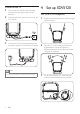 Connect to the TV 1 2 3 One end of the coaxial cable is already connected to the signal output of the antenna. 4 Set up SDV5120 Connect the other end to the input on the TV receiver. For VHF/FM reception 1 Extend the telescopic dipoles to the longest Connect the DC plug to the antenna and the power supply to a 230-240V AC outlet. 2 possible length. Turn the TV or FM radio to the desired channel/station. Move the dipoles in different directions up and down until the reception is achieved.