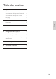 1 Important 4 Sécurité 4 Avertissement spécifique aux États-unis 4 Avertissement spécifique au Canada 4 Recyclage 4 2 Votre SDV6122 5 Présentation 5 3 Mise en route 6 Installation 6 4 Configuration de SDV6122 6 Pour une réception VHF/FM 6 Pour une réception UHF 7 Configuration d’un tuner numérique avec cette antenne 7 5 Foire aux questions 8 6 Garantie et réparation 8 7 Glossaire 9 Fra nça is Table des matières FR 3