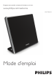 1 Important correcte de l'ancien produit permet de préserver l'environnement et la santé. Sécurité Sur un produit, ce logo signifie qu'une contribution financière a été versée au système de récupération et de recyclage national correspondant. Ce manuel contient des informations importantes sur l'antenne de télévision d'intérieur Philips. Lisez-le attentivement avant de commencer l'installation et la configuration. • L'appareil ne doit pas être exposé aux fuites et aux éclaboussures.