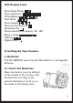 • All data will be deleted and unable to be recovered after a card is formatted. Be sure to backup all pictures and saved data to your computer before formatting the SD card. 18. Camera Safe-Handling • To avoid the danger of electric shock, do not open the camera body or attempt to repair the camera. • Keep the camera dry. Water or humidity may cause camera failure. • Stop using the camera and turn off the power immediately if the camera gets wet. It is necessary to dry the camera before reuse.