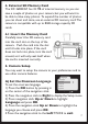 17. SD Memory Card The camera uses an SD memory card with up to an 8GB storage capacity, and may not recognize memory cards with a larger storage capacity. It may be necessary to format the memory card in the following situations: • The inserted card is unformatted; • The card is not working properly in the camera even if it has been previously formatted; • The card has previously been used in another camera. 17.