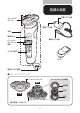 各部の名称 充電アダプタ部 シェービング ユニット 電源プラグ部 本体 電源ボタン 電源コネクタ部 パーソナル コンフォート 設定 デジタル表示 トリマー 電源コネクタ受部 ●シェービングユニット シェービングヘッド シェービングヘッド分解図 裏側 保持板 内刃 表側 外刃 シェービングヘッドホルダー (替刃品番:SH98/81) 6