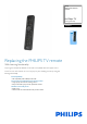 Pre-programmed with the PHILIPS TV IR code. Compatible with all TV types such as