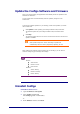 Update the Configo Software and Firmware When you launch Configo, the application automatically checks for updates of the software and firmware. If your Configo does not automatically check for updates, change it in the Preferences. In the list of available updates for your Prestigo, select which updates you would like to install and: Click Update to start updating your Prestigo software and/or firmware. The selected update for your Prestigo software and/or firmware starts. -orClick Skip.