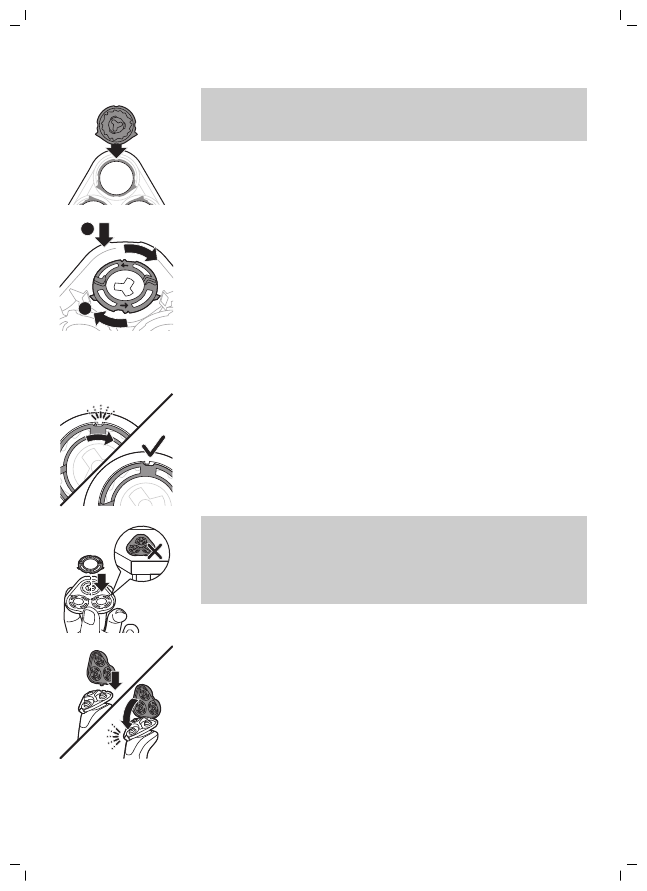 Piezīme. Ievietojot atpakaļ skūšanas galviņas,