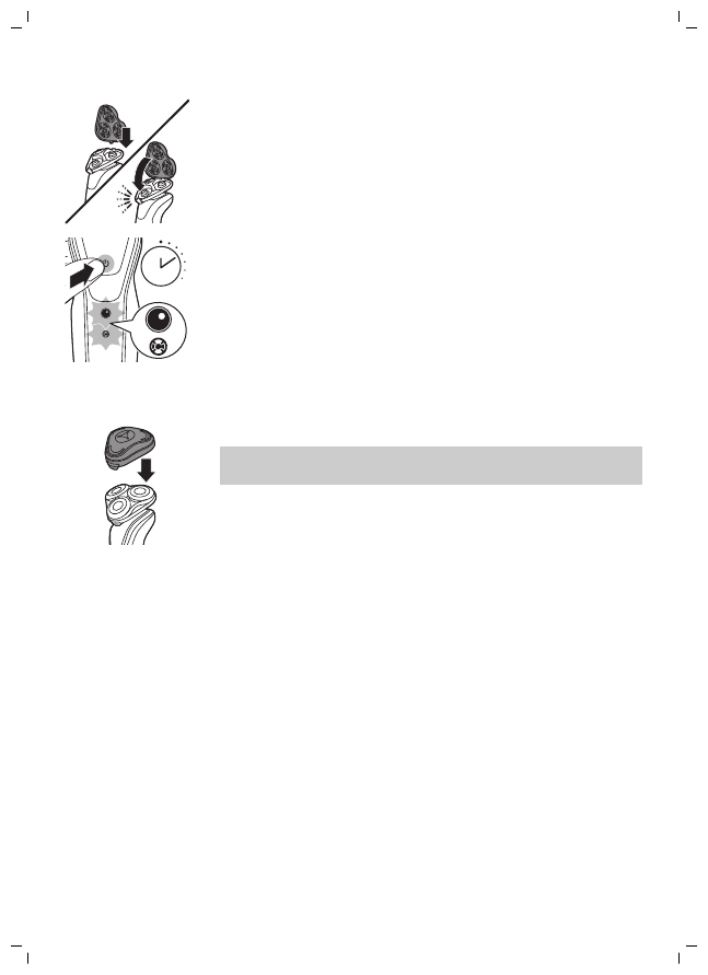 8 Vėl įstatykite skutimo galvutės laikiklio vyrį į