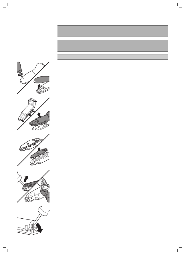 - Pakartotinai įkraunamos prietaiso baterijos išėmimas