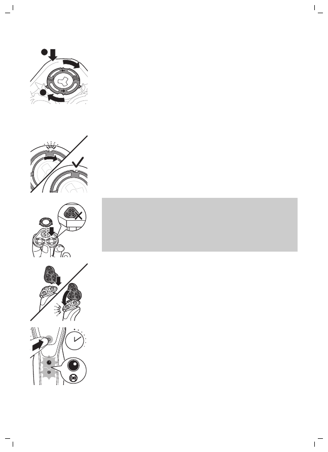 на бръснещите глави и ги завъртете по