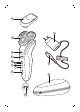 English 19 7 Attach the shaving head holder to the bottom part of the shaving unit (‘click’). Cleaning the precision trimmer attachment Never dry the trimmer with a towel or tissue, as this may damage the trimming teeth. Clean the trimmer after each use. 1 Switch the shaver on. 2 Rinse the trimmer under a warm tap. 3 After cleaning, switch off the shaver. 4 Carefully shake off excess water and let the attachment air dry completely.