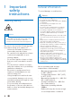 1 Important safety instructions Hearing Safety Danger To avoid hearing damage, limit the time you use headphones at high volume and set the volume to a safe level. The louder the volume, the shorter the safe listening time is. Be sure to observe the following guidelines when using your earpieces. • Listen at reasonable volumes for reasonable periods of time. • Be careful not to adjust the volume continuously upwards as your hearing adapts.