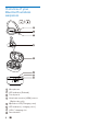 3 Get started • • Charging process is verified by white LED light on the earpiecess. When the earpieces is fully charged, the white light goes off. Charge the battery Note Before you use your earpieces for the first time, place the earpiecess in the charging case and charge the battery for 3 hours for optimum battery capacity and lifetime. Use only the original USB charging cable to avoid any damage.