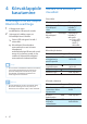 Sisu 1 Olulised ohutusjuhised 2 2 Teie Bluetooth-kõrvaklapid 3 Kuulmisohutus Üldteave Mis karbis sisaldub Muud seadmed Bluetooth juhtmevabade kõrvaklappide ülevaade 3 Alustame Laadige aku Ühendage kõrvaklapid kokku oma mobiiltelefoniga 2 2 3 3 4 5 5 5 4 Kõrvaklappide kasutamine 6 5 Tehnilised andmed 9 Ühendage oma kõrvalapid Bluetooth-seadmega 6 Hallake oma kõnesid ja muusikat 6 Mänguaja piirangu ja helitugevuse piirangu saab määrata Philips Headphones rakenduses.