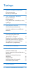 Turinys 1 Svarbios saugos instrukcijos 2 2 Jūsų „Bluetooth“ ausinės 3 Klausos apsauga Bendroji informacija Kas yra dėžutėje Kiti įrenginiai Jūsų „Bluetooth“ belaidžių ausinių apžvalga 3 Kaip pradėti naudoti Akumuliatoriaus įkrovimas Ausinių susiejimas su mobiliuoju telefonu 4 Ausinių naudojimas Ausinių prijungimas prie „Bluetooth“ įrenginio Skambučių ir muzikos valdymas Atkūrimo laiko limitą ir garsumo limitą galima nustatyti „Philips Headphones“ programoje 5 Techniniai duomenys 6 Pranešimas Atit