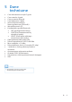 Zawartość 1 Ważne instrukcje bezpieczeństwa 2 Ochrona słuchu Informacje ogólne 2 Twoje słuchawki Bluetooth Co znajduje się w pudełku Inne urządzenia Przegląd bezprzewodowych słuchawek Bluetooth 3 Rozpoczęcie pracy Ładowanie baterii Parowanie słuchawek z telefonem komórkowym 2 2 3 3 3 4 5 5 5 4 Używanie słuchawek 6 5 Dane techniczne 9 6 Powiadomienie 10 7 Znaki handlowe 12 8 Często zadawane pytania 13 Łączenie słuchawek z urządzeniem Bluetooth 6 Obsługa połączeń i muzyki 6 Limit czasu odtwar