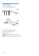 3 Начало работы Зарядка аккумулятора Примечание • Перед первым использованием наушников поместите их в зарядное устройство и заряжайте аккумулятор в течение 2 часов для обеспечения оптимальной емкости и срока службы аккумулятора. • Во избежание повреждений используйте только оригинальный кабель USB для зарядки. • Завершите звонок перед зарядкой. Подключение наушников к зарядному устройству отключит их.