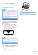 2 Your True wireless earpieces Congratulations on your purchase, and welcome to Philips! To fully benefit from the support that Philips offers, register your product at www.philips.com/support. With this Philips True wireless earpieces, you can: • enjoy convenient wireless handsfree calls; • enjoy and control wireless music; • switch between calls and music. Quick start guide Global Warranty Safety leaflet What's in the box Other devices A mobile phone or device (e.g.