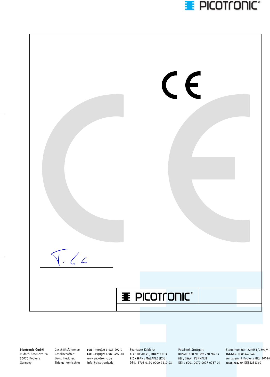Picotronic GmbH | Rudolf-Diesel-Strasse 2a | 56070 Koblenz | Germany | Tel: +49(0)261/9834970 | Fax: +49(0)261/983497-10