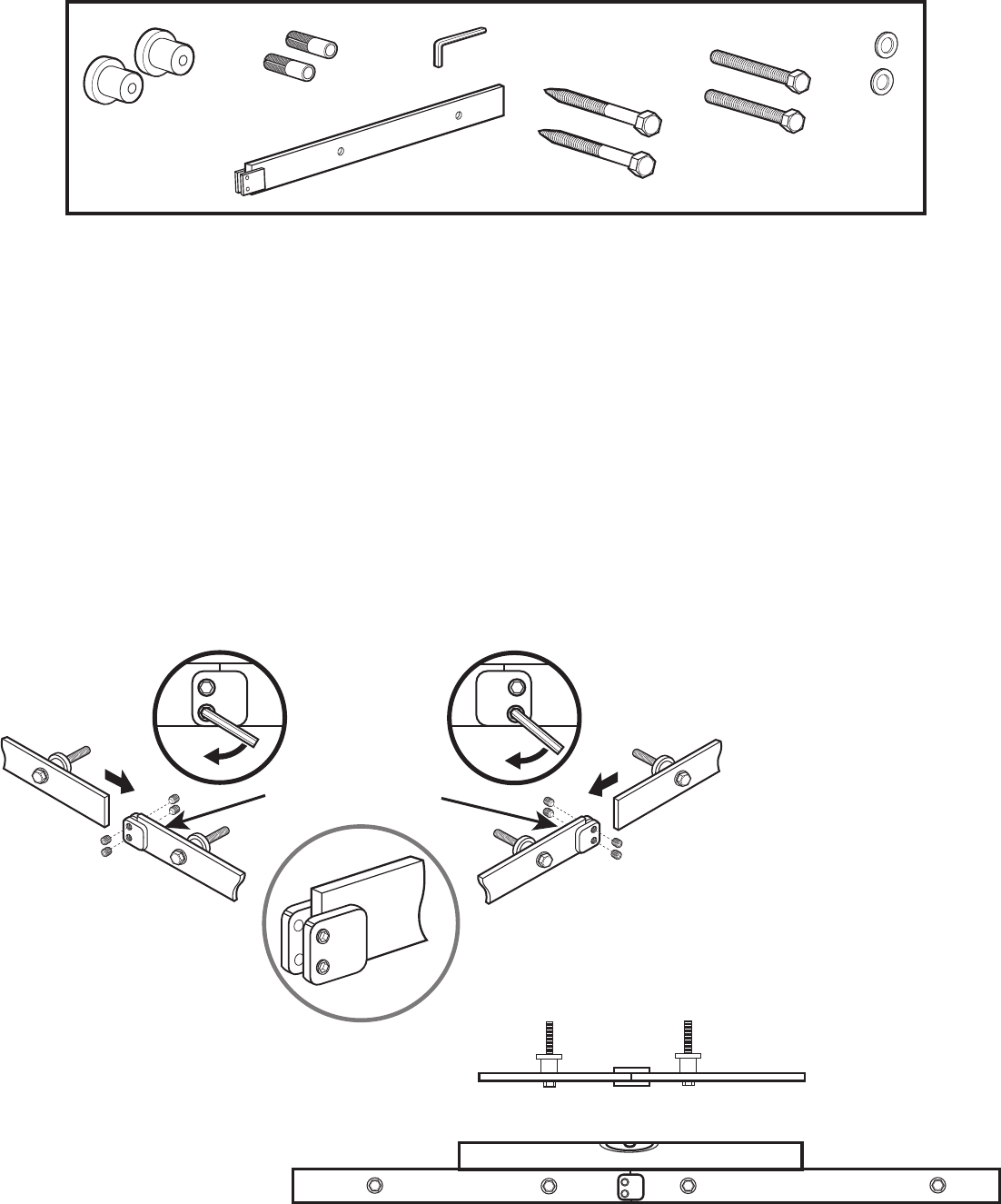 Turn the track and extender over, use the allen wrench to tighten the 2 remaining screws. Use the level