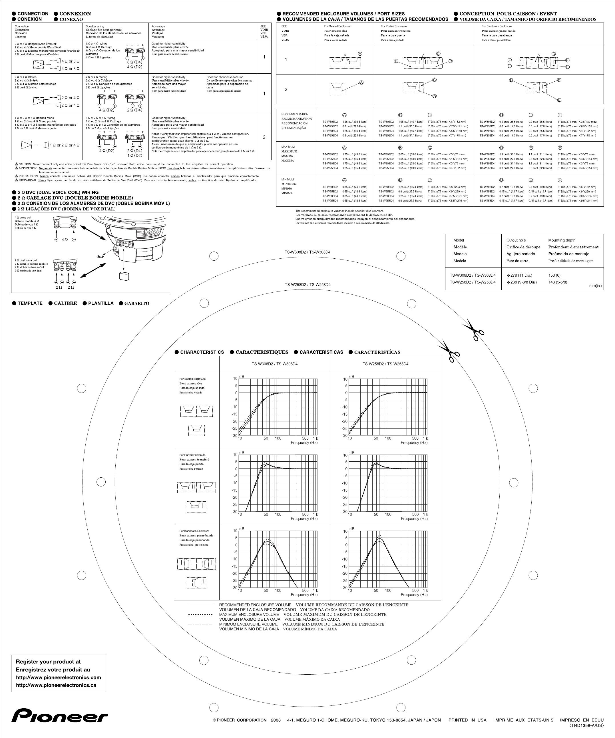 Pioneer Car Use Componet Subwoofer TS-W258D4
