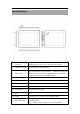 12. USB OTG USB OTG, supports mouse, keyboard, USB flash disk, etc, with a converting cable 13. Power jack (DC input) Connect to a 9V output adaptor as included in the accessories 14. Speakers Speakers 15. Reset Press to reset the taplet if it freezes or behaves abnormal. 16. Rear camera 2M pixel rear camera I. Getting Started 1.1 Turn on/off 1.1.1 Turn on To start your taplet, press and hold the power key at the right side of your taplet for a while.
