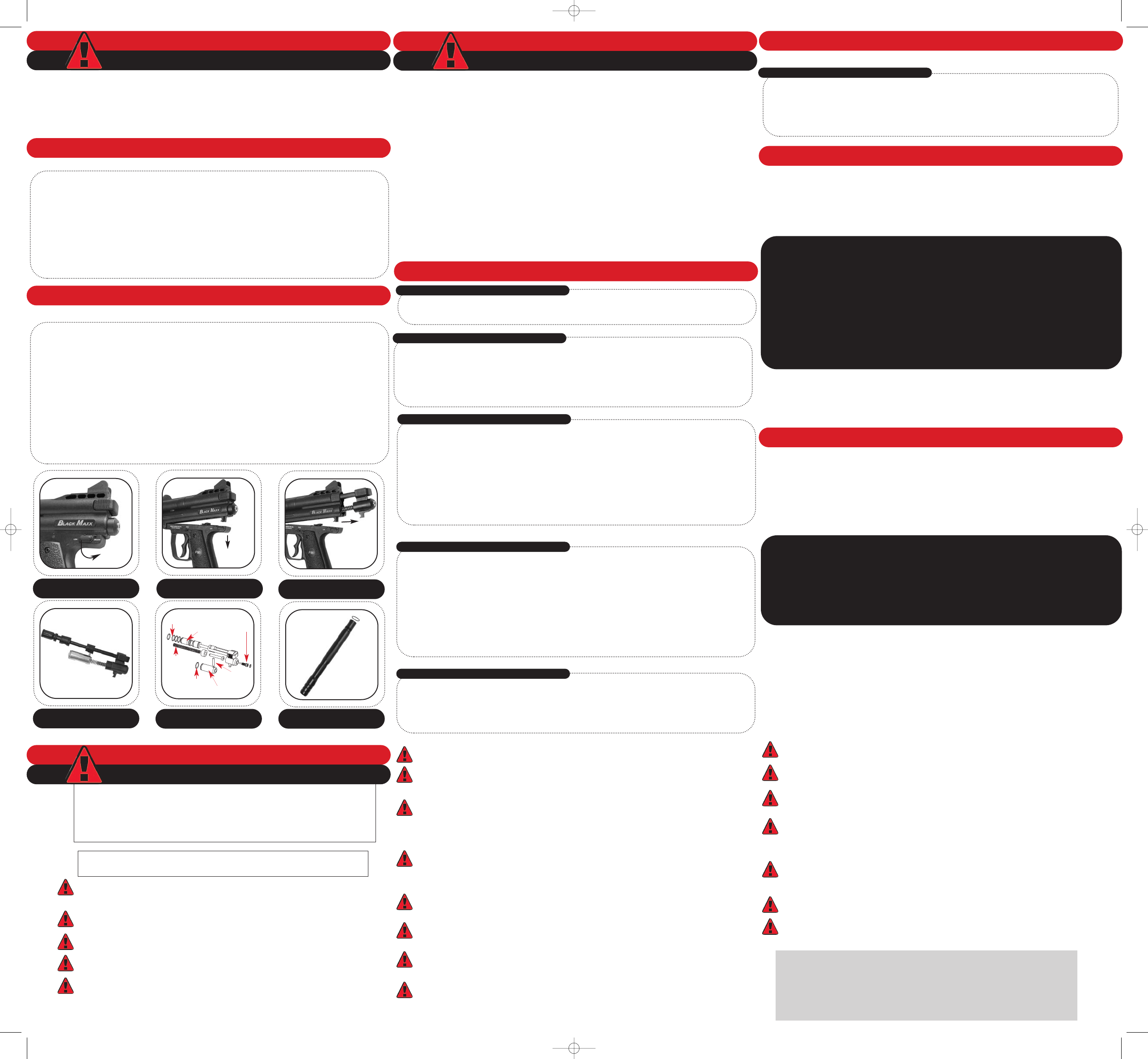 bille de peinture. Ne regardez jamais l’intérieur du canon pour vérifier s’il contient une bille de peinture une fois qu’il est fixé