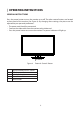 || OPERATING INSTRUCTIONS GENERAL INSTRUCTIONS Press the power button to turn the monitor on or off. The other control buttons are located at front panel of the monitor (See Figure 4). By changing these settings, the picture can be adjusted to your personal preferences. •• The power cord should be connected. •• Connect the video cable from the monitor to the video card. •• Press the power button to turn on the monitor. The power indicator will light up. Figure 4 1. 2. 3. 4. 5.