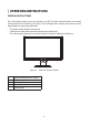 || OPERATING INSTRUCTIONS GENERAL INSTRUCTIONS Press the power button to turn the monitor on or off. The other control buttons are located at front panel of the monitor (See Figure 4). By changing these settings, the picture can be adjusted to your personal preferences. •• The power cord should be connected. •• Connect the video cable from the monitor to the video card. •• Press the power button to turn on the monitor. The power indicator will light up. Figure 4 1. 2. 3. 4. 5.