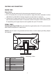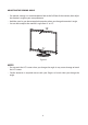 INSTALLATION INSTRUCTIONS STAND BASE INSTALLATION The monitor is supplied complete with a stand.If you prefer to wall mount the monitor, please follow the instructions on page 21 to remove the stand. Be sure to include the stand with the monitor if it is necessary to return the unit. CAUTION •• Put the monitor on a stable surface.The monitor may cause injury or damage if it falls or is dropped. •• Do not give a strong impact to the monitor.It may cause damage.