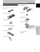 Checking Supplied Accessories English Before Proceeding 7 Display stands (x 2) Check that the following accessories were supplied. 1 Power cord 8 Washers (x 2) 2 Remote control unit 9 Hex hole bolts (x 2) 3 AA (R6) batteries (x 2) 0 Remote control unit holder Before Proceeding Use as a holder for the remote control unit. When attaching to the rear of the main unit, be careful not to cover the vents.