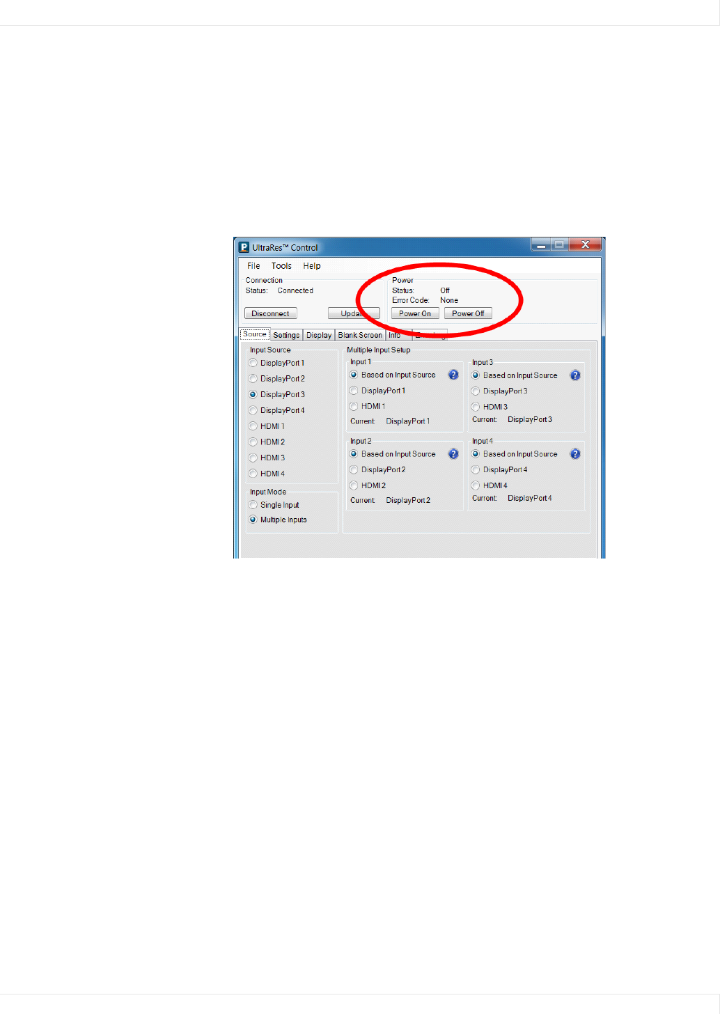 • Using the Power On/Power Off buttons in the UltraRes Control software tool.