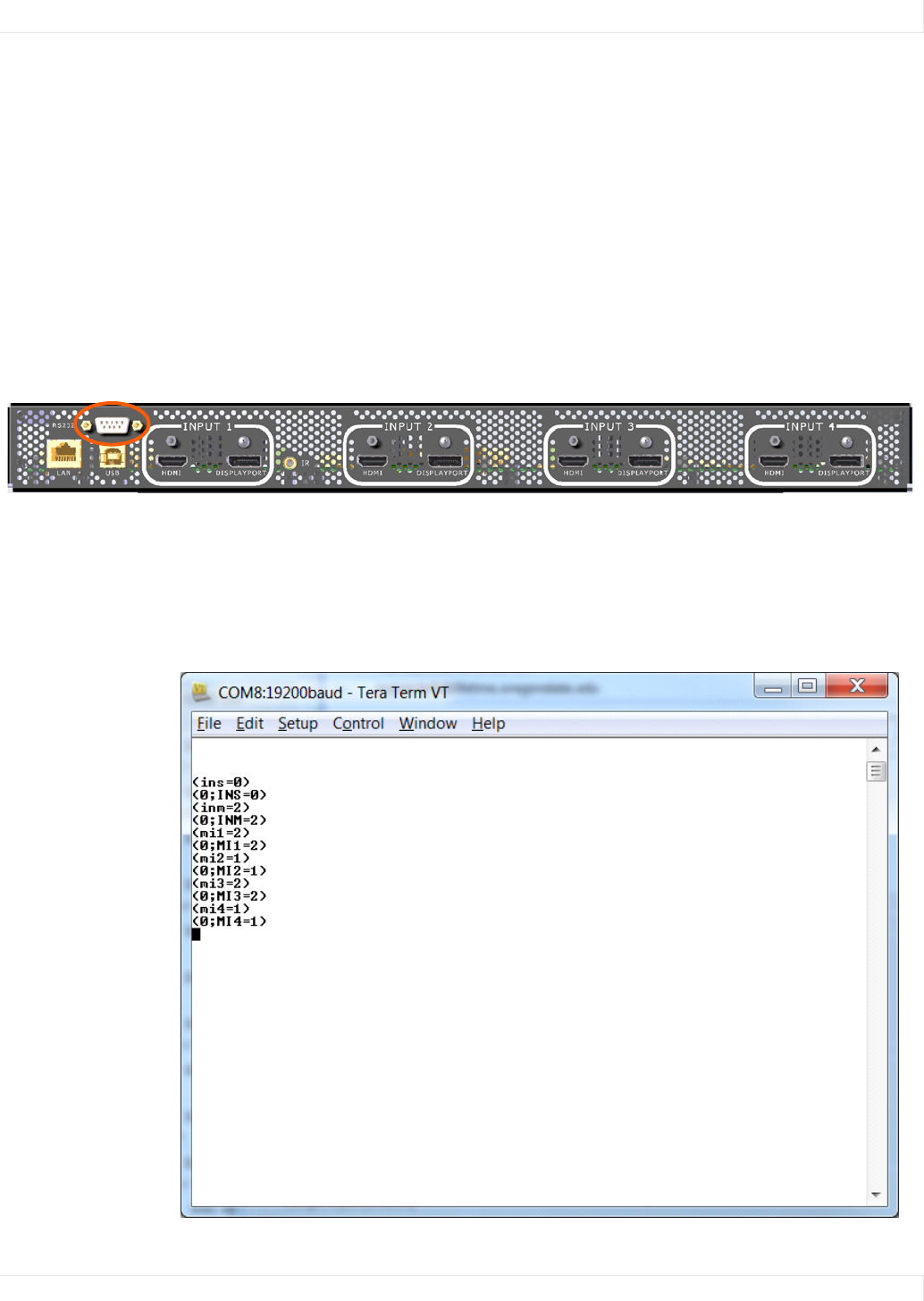 RS232 commands, you can pull up a basic program such as Tera Term to send