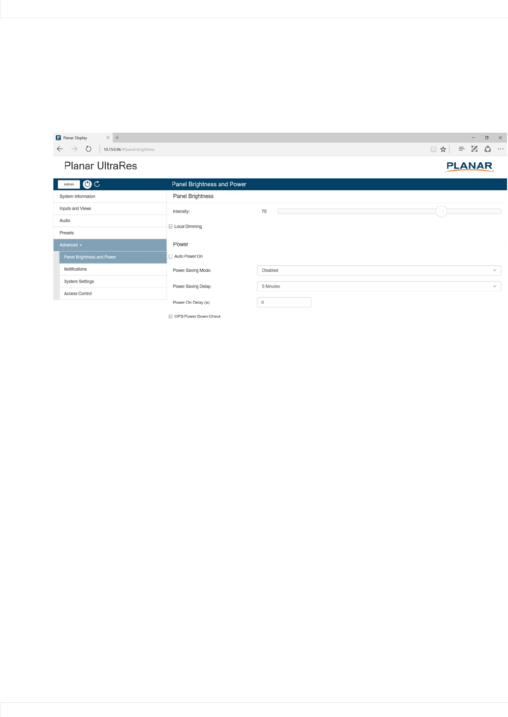 For the OSD equivalents, refer to "Panel Brightness Submenu" on page 45 and "Power