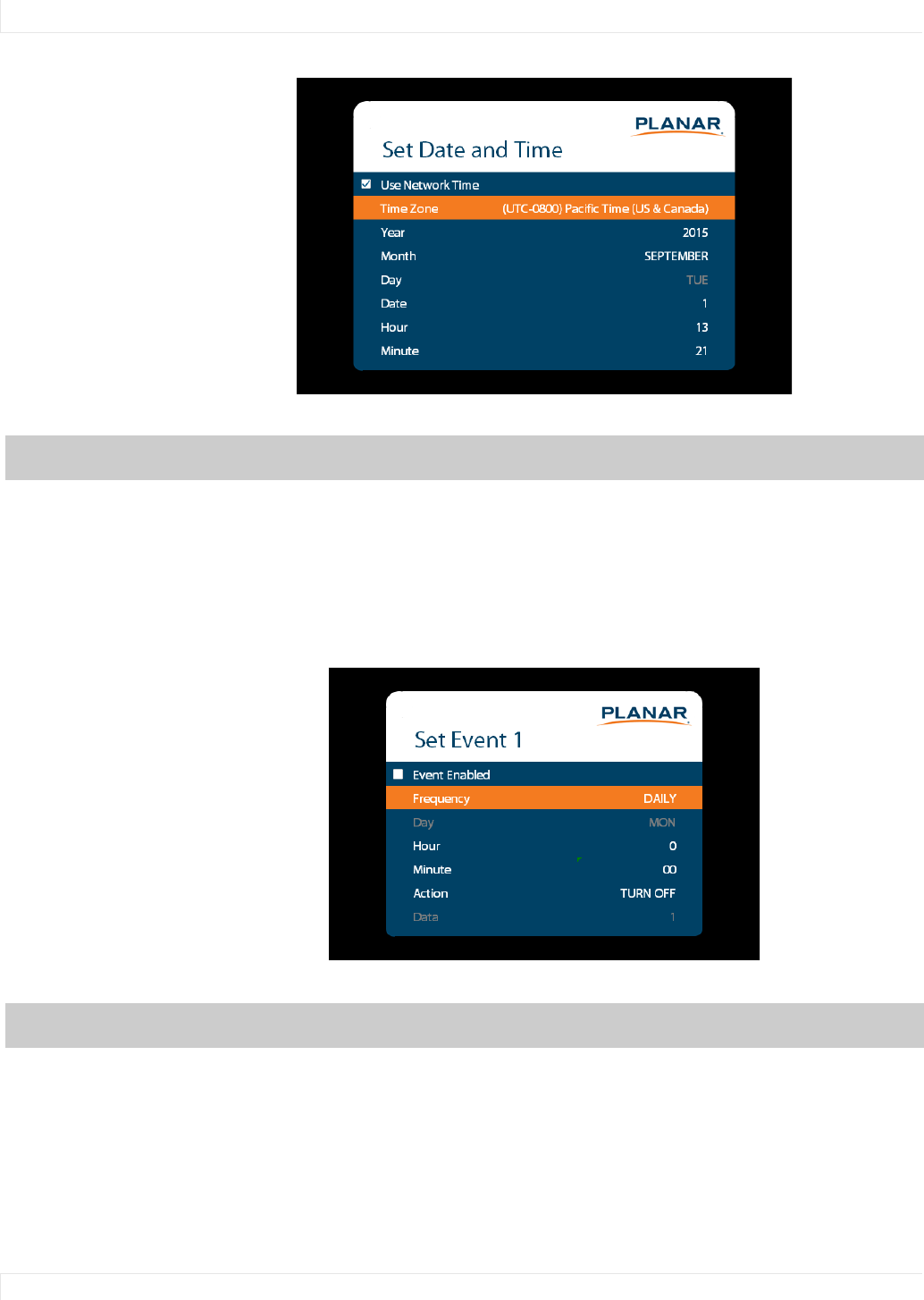 Note: If Use Network Time is checked and DHCP is unchecked, the display will be unable