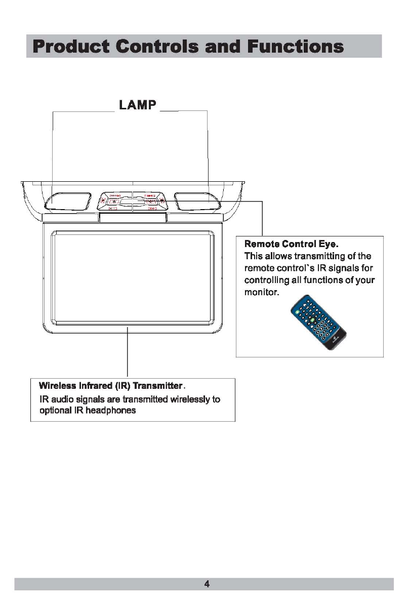 Car Roof-Mount Monitor and DVD Player - 10.1 Inch LCD, Widescreen, Flip-Down, FM Transmitter, IR Transmitter, Speakers, Dome Light, Interchangeable Black/Gray/Tan Housings