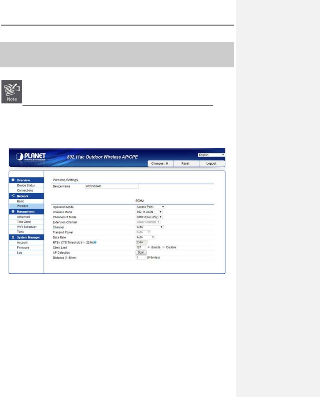 wireless connection. Once the basic configuration of the device is done, go to the Changes page to save and