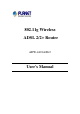 1. Introduction The PLANET 802.11g Wireless ADSL 2/2+ Router, ADW-4401v2, provides office and residential users the ideal solution for sharing a high-speed ADSL 2/2+ broadband Internet connection on a 54Mbps wireless network and a 10/100Mbps Fast Ethernet backbone. It can support downstream transmission rates of up to 24Mbps and upstream transmission rates of up to 3.5Mbps.