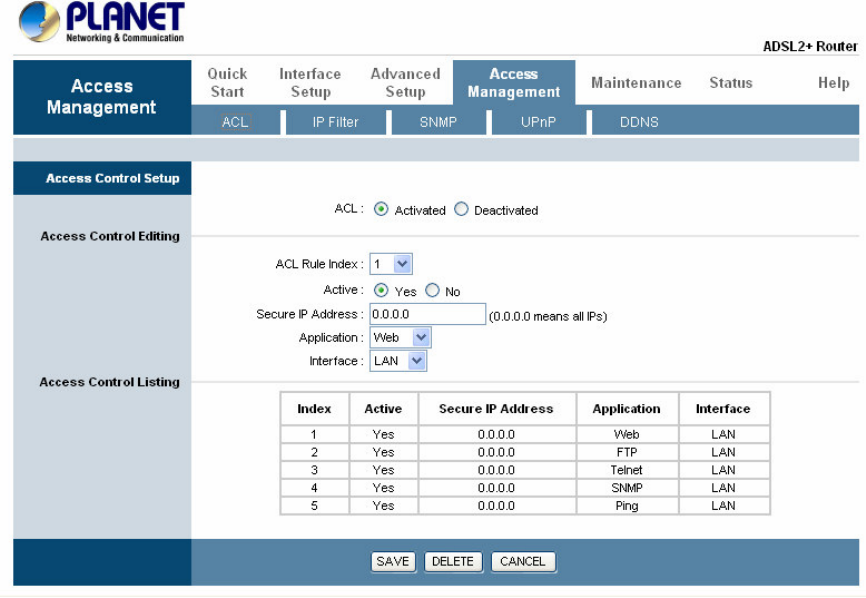 ACL: There has Activated & Deactivated option. The default setting is Deactivated