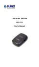 Revision User’s Manual for PLANET USB ADSL Modem Model: ADU-2100A / ADU-2100B Rev: 1.0 (JUL. 2003) Part No.: EM-ADU2100V1.