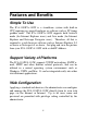 Hardware Interface LAN Connector: Wireless LAN: (ICA-110W) Communication protocol: CPU: RAM: Flash ROM: OS: Power Supply: Power consumption: LED Indicator: I/O port pin assignment: Input: Output: RS-485: One RJ-45 port, 10/100M autosensed, Auto-MDIX Built-in 802.11g WLAN HTTP, FTP, TCP/IP, UDP, ARP, ICMP, DHCP, PPPoE, DDNS, SMTP, UPnP ADMtek 5120 16MB 4MB Linux 5VDC/2.5A, 100~240VAC, 50/60Hz 10 Watt max.