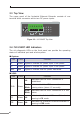 2.3 Top View The upper panel of the Industrial Ethernet Extender consists of one terminal block connector within two DC power inputs. 1A@24V 1 2 3 4 5 6 V1+ V1- PWR1 V2+ V2Fault PWR2 Input DC12~48V, AC 24V Figure 2-3: IVC-234GT Top View 2.4 IVC-234GT LED Indicators The rich diagnostic LEDs on the front panel can provide the operating status of individual port and whole system. System LED Color Function P1 Green Lights to indicate DC power input 1 has power.