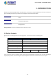 User’s Manual of SGS-5220 Series TABLE OF CONTENTS 1. INTRODUCTION .................................................................................................................. 10 1.1 Packet Contents ......................................................................................................................................... 10 1.2 Product Description ................................................................................................................................... 11 1.