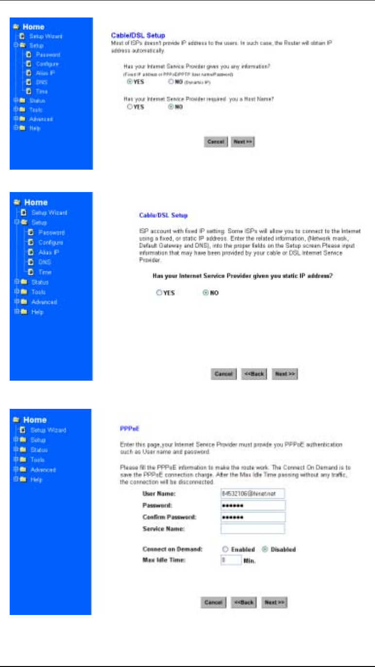 Figure 3-2 Cable/DSL Setup Menu Screen