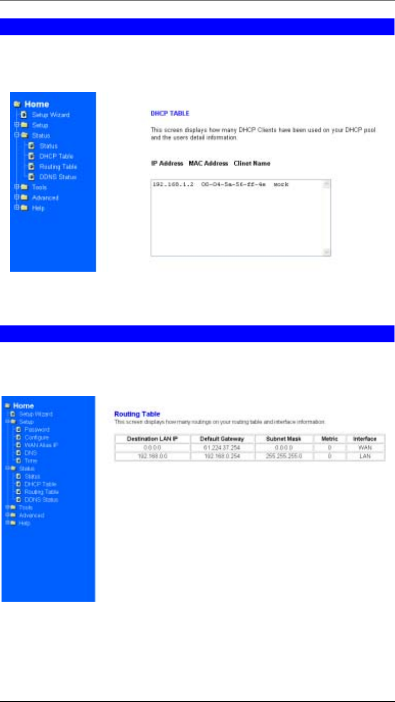 shows the DHCP Table Screen.