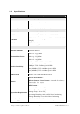 1.3 Specifications Item Specification Key Components Main Processor Realtek RTL8196C (400MHz ) Flash 8Mbytes Serial Flash RAM 32Mbytes SDRAM Wireless Chip Realtek RTL8188RE-VL (MAC+BB+RF) 1T1R Communication Interfaces WAN/LAN Port 1 x 10/100 Mbps RJ45 with auto MDI/MDIX LAN Port 1 x 10/100 Mbps RJ45 with auto MDI/MDIX USB Port USB 2.0 host x1 (supports 3.5G or WiMAX USB dongle) Wireless IEEE 802.11 b/g/n Others Wireless Antenna External 3dBi x1 802.