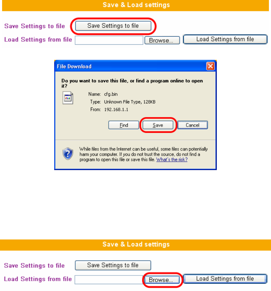 Before upgrading, you can use this function to save current system settings or upload the previous