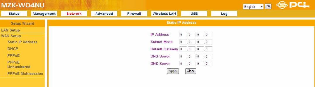 Default Gateway:Enter the Gateway address provided by your ISP.