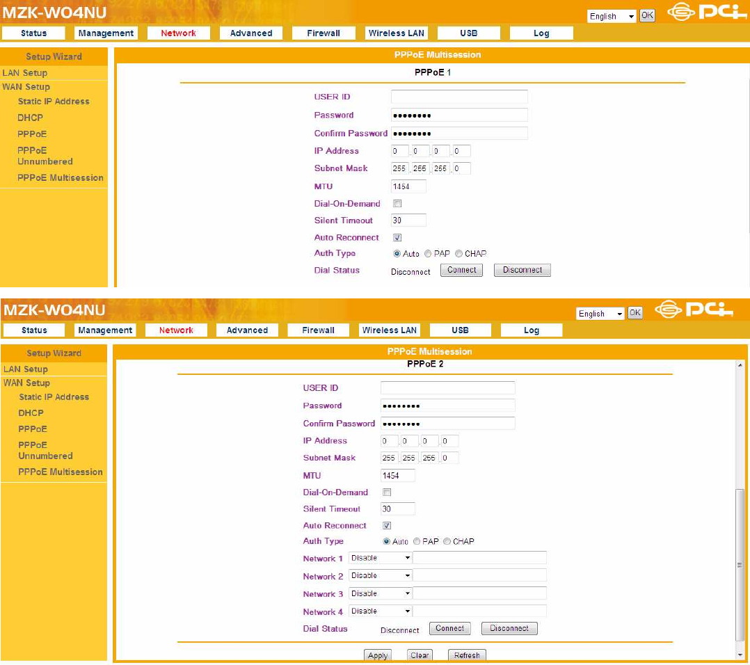 MZK-W04NU provides two connections: PPPoE 1 and PPPoE 2.