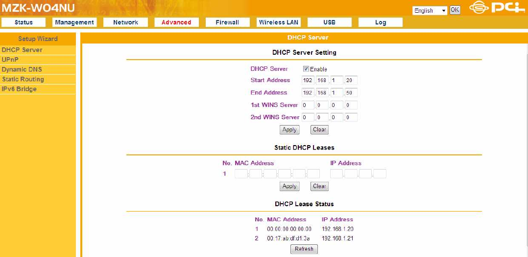settings from MZK-W04NU. The DHCP server will allocate an unused IP address from the IP address